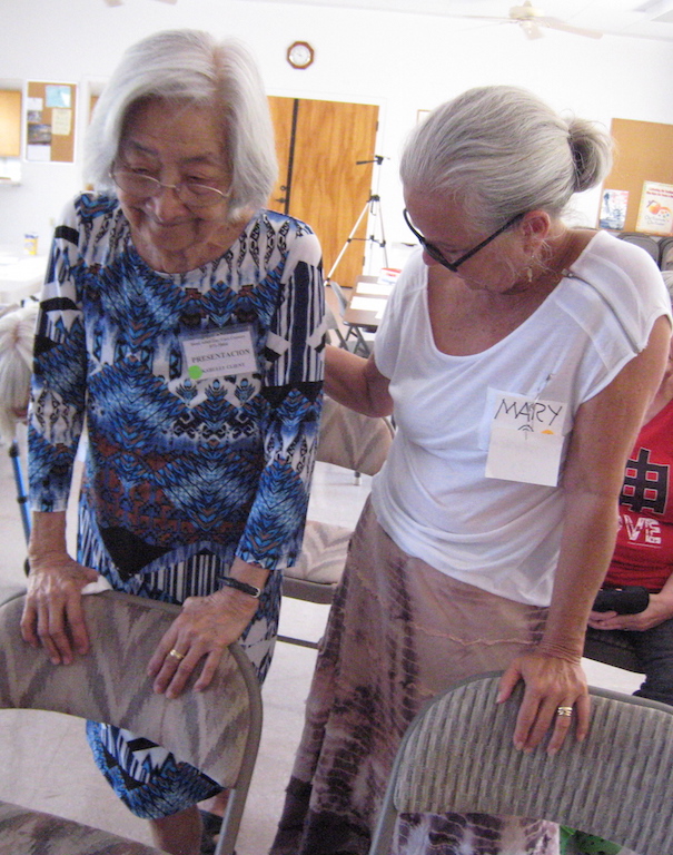 Fit elder mentors individualize the exercises for the mentees. When the mentees feel safe in a loving atmosphere, they are willing to do the activities. In fact, they really get into focusing in tthe moment, and become present and alive. Their demeanor changes as they participate, sing, move, and learn new things. Learn how to adapt the exercises to the functional needs of your elder.