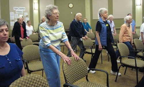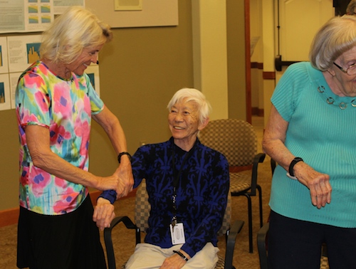 In October 2015 we brought Move With Balance® with music to Touchmark, a CCRC in Bend, OR. The Life Enrichment Assistant had this to say about our visit:“Overall the residents really enjoyed this workshop. Many were disappointed that some of their friends did not attend. There were around 40+ people and I think due to the design of the class we would have needed a bigger room if there were more. I feel there was something for everyone-it was different, challenging, fun, and inspired community. We had a full variety of residents present including: independents, assisted living, and memory care. All enjoyed and all can truly benefit from this type of program. However, I think the ones that enjoyed the most and is Memory Care as it was quite therapeutic at the end.